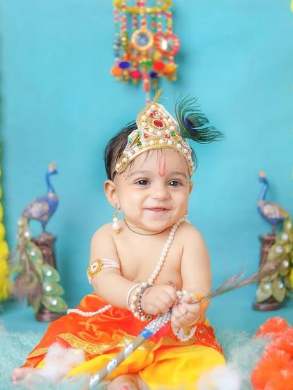 I love creating magical photoshoots for festivals like Janmashtami. We have beautiful costumes and detailed backdrops to capture your little Kanha or Gopi in a truly divine setting. These sessions are perfect for celebrating our culture and creating memories that connect to our roots.