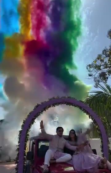 Forget boring couple walks. You can make a grand bridal entry - maybe on a Mahindra Thar with smoke bombs or the groom rolling in on an ATV, full Bollywood style. Jaimala pe rotating stage ho, Shiva statue backdrop ho, ya cold pyros ka dhamaka (special effects blast) - sab possible hai.