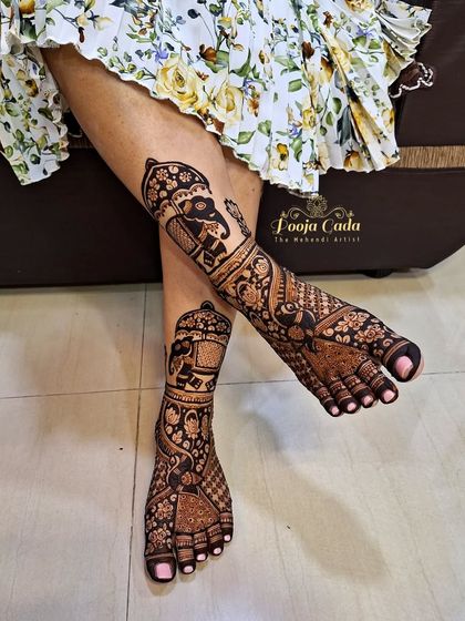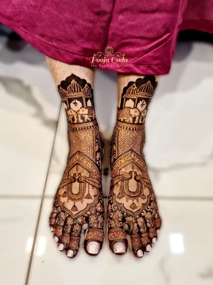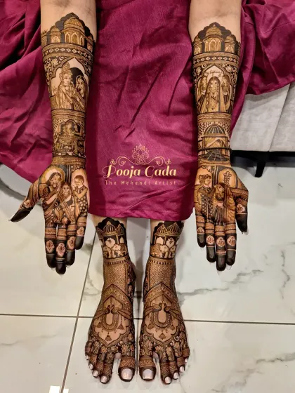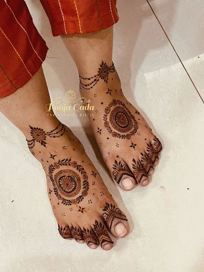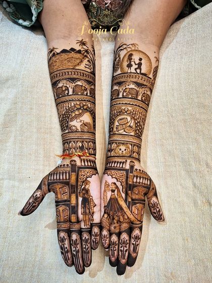 Hi, I'm Pooja. Mehendi for me is not just patterns - it's your story on your skin. Been doing this since my Mumbai days, now I travel everywhere with my henna cones - Goa, Dubai, Kenya, you name it. My favourite? When NRI brides from US, UK, Canada want to add their 'saath phere' (wedding rounds) or some special moment into their bridal mehendi. Every bride is a new story for me.
