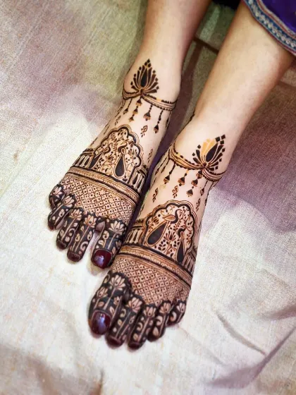 I create personalized bridal mehendi designs with 14 years of artistry worldwide