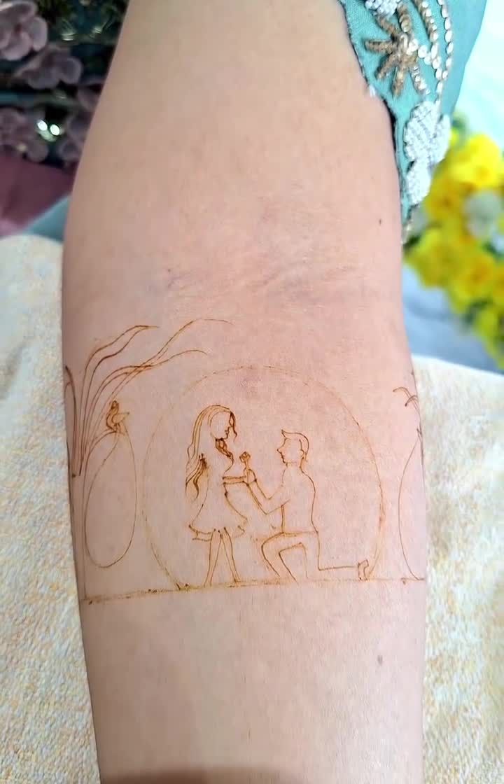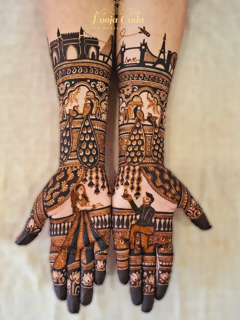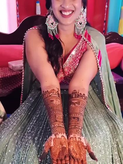 Your mehendi should be as unique as your journey. I specialize in weaving your personal story into the design, from proposal scenes and city skylines to portraits of loved ones and even pets.