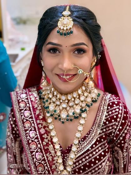 I specialize in creating authentic Maharashtrian bridal looks, from the perfect Nauvari saree draping to traditional hairstyles like the Khopa. My service includes applying the iconic Chandrakor bindi and fitting the bridal Nath to complete the look with grace and perfection.