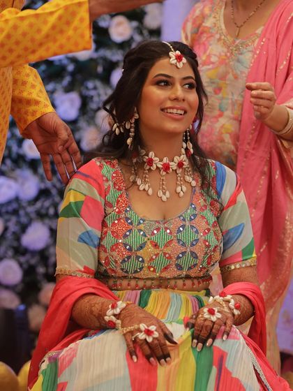 I provide makeup and hair for all pre-wedding functions, including Haldi, Mehendi, and Puja ceremonies. The looks are designed to be fresh, vibrant, and long-lasting, ensuring you look your best while enjoying these important rituals with family and friends.