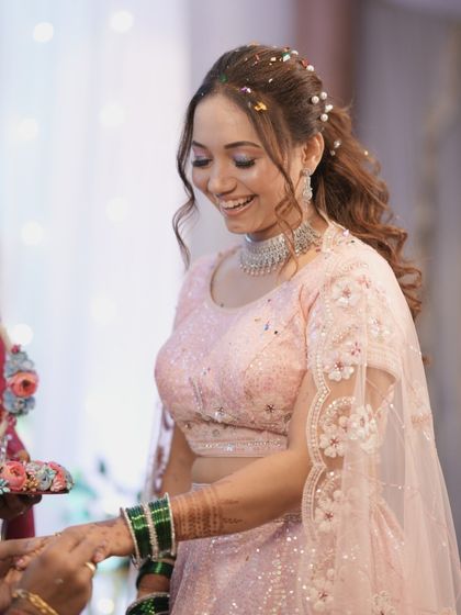 I design fresh, vibrant, and water-resistant makeup looks perfect for the fun and energy of Haldi and Mehendi ceremonies. Paired with beautiful floral hairstyles, you'll look radiant and feel comfortable throughout the celebrations.