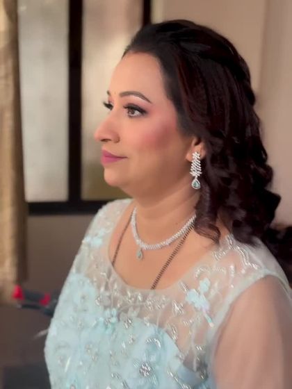 For evening events like receptions, sangeets, or cocktail parties, I create stunning looks that range from soft glam to full-on sparkle. My service includes makeup that looks great in evening light and hairstyles that last all night.