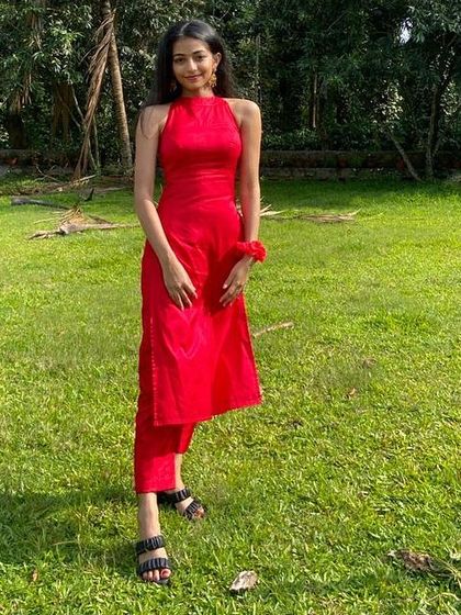 Angi Studio isn’t just about stitching clothes - it’s about stitching stories. My place is a rainbow of chaos, full of raw silk, kalamkari, messy threads, and wild colours. I get to make outfits that mean something to you, for your big moments. Watching a bride go all smiles in her custom kalamkari blouse or a kid spin around in her birthday gown, that’s the real joy. My clients, they’re not just customers, they’re my favourites.