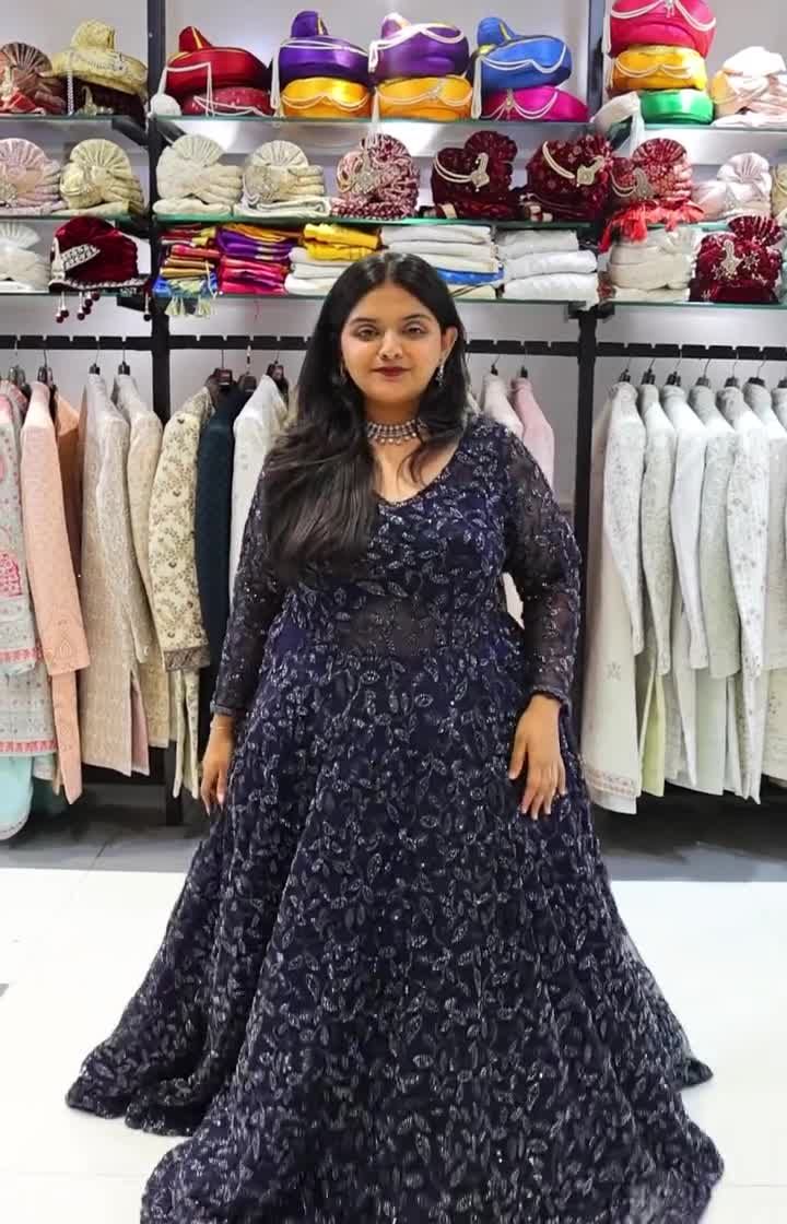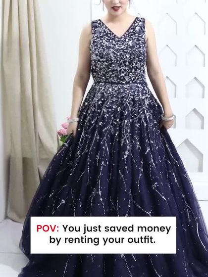 Make a bold and regal statement with my collection of lehengas and gowns in rich, royal colors. I have a wide selection of outfits in navy blue, royal purple, and deep wine, featuring heavy embroidery, sequins, and luxurious fabrics for a truly majestic look.