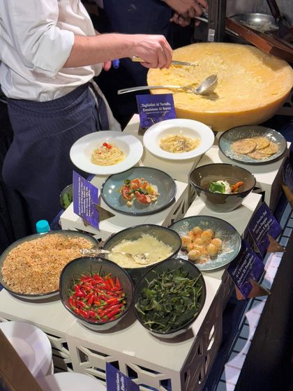 World Cuisines & Live Stations - We serve everything from regional Indian to Pan-Asian, Italian, and live Burrata Bar or Tahina Fountain.