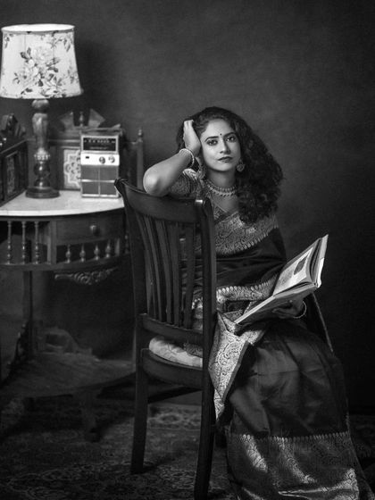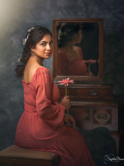 My background is in canvas painting, so I work with light, shadow, and that soft, classic vibe. I’m drawn to the old-school look - think Rembrandt, but with you at the center. The style is moody, vintage-inspired, and I use props and styling to build a world that feels timeless.