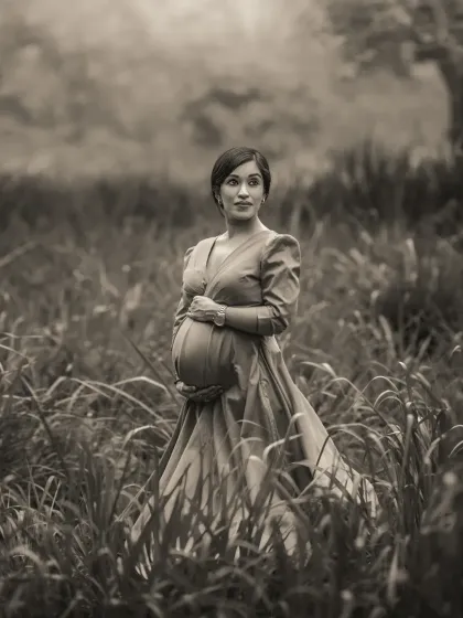 - Outdoor: Prefer sunlight and open spaces? We can shoot in fields, under trees, or wherever the Bangalore light feels just right. These outdoor pregnancy photoshoots have a dreamy, relaxed vibe - ideal for capturing all that natural beauty and real connection.