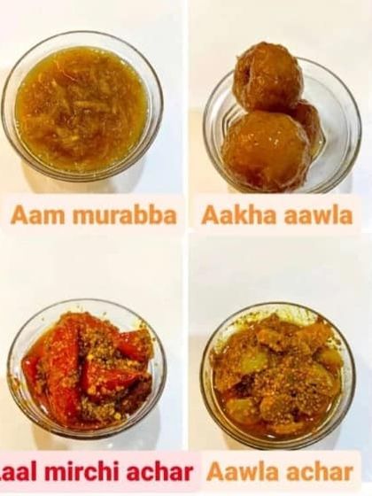 Homemade Pickles & Preserves - Aam Mastana, Nimbu Chatpata, Mirchi Chatkara, Laal Mirchi, Aawla, Aam ka Murabba, Aawle ka Murabba.
