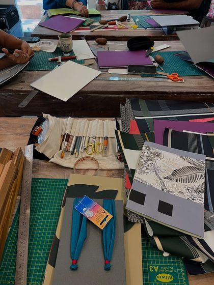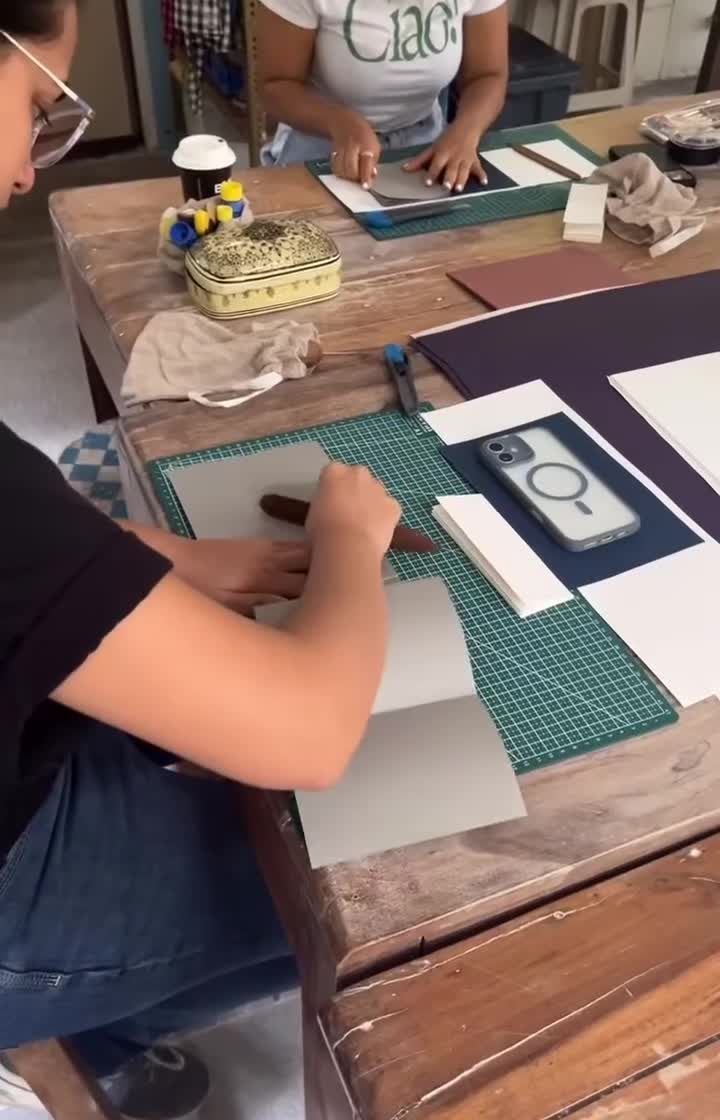 This is the first glimpse into our world of making. We've selected these visuals to give you a feel for the hands-on, creative, and joyful experiences that happen in our studio. It’s a peek into the different art forms you can explore with us, from bookbinding to painting and pottery.