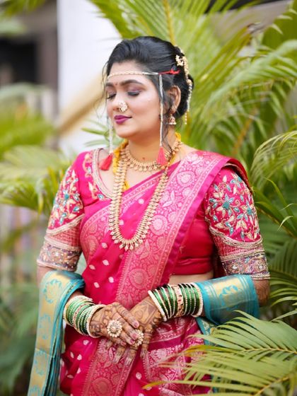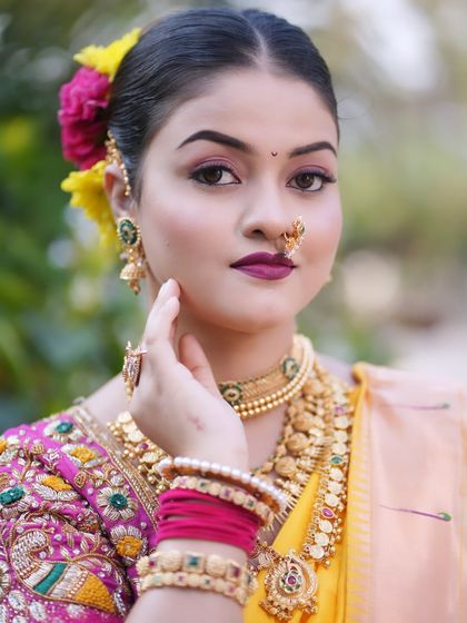 I do bridal and occasion makeup for all cultures, with a focus on authentic Maharashtrian looks, and also handle hairstyling, saree draping, and jewellery so you get everything in one place.