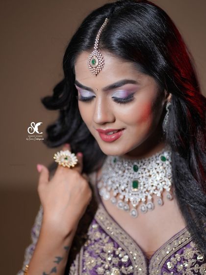 - Bridal makeup with intricate hairstyling