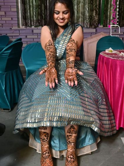 Brides-to-be and their families seeking elegant, customized mehndi designs for engagement celebrations. Ideal for those who want their mehndi to complement their outfit and capture the joy of their special day.