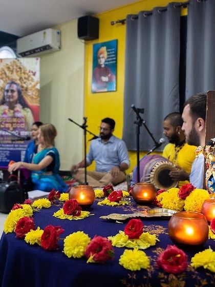 We organise yoga retreats and community events where you can join sunrise yoga, nature hikes, group kirtans, health workshops, and festival celebrations in simple, peaceful settings with others.