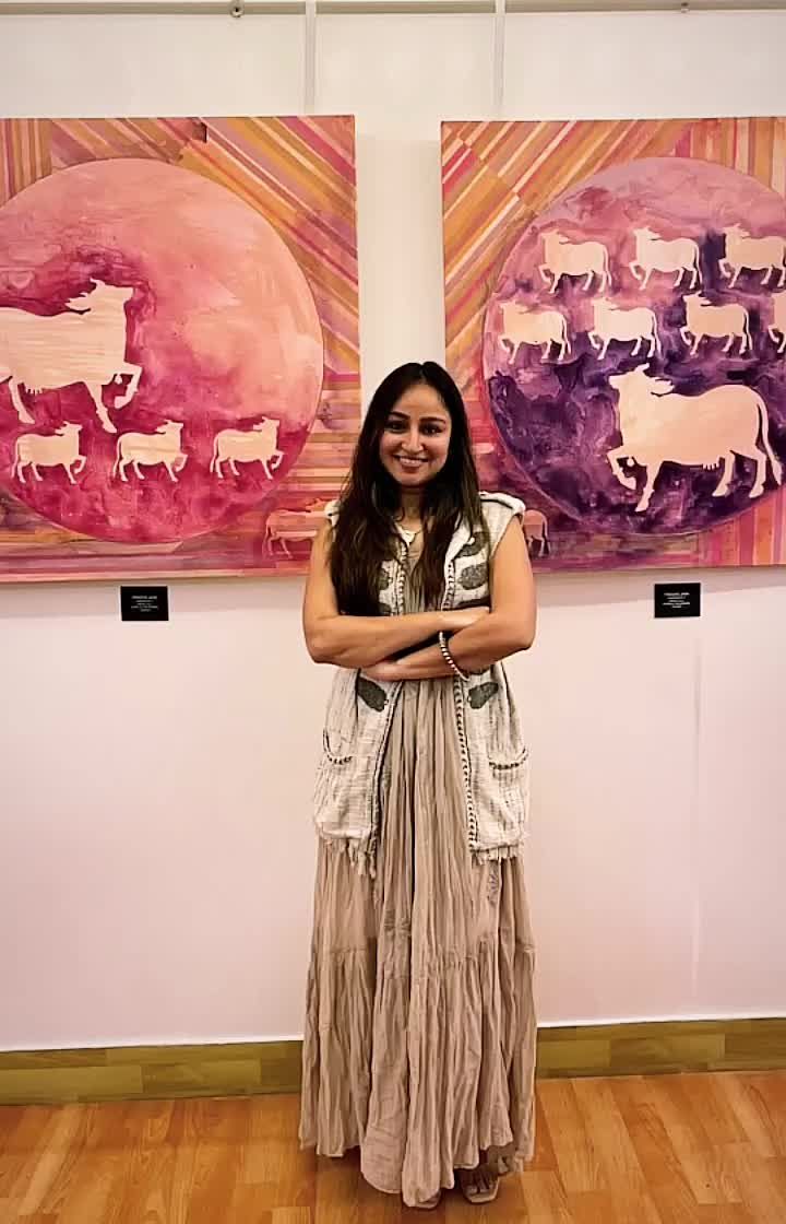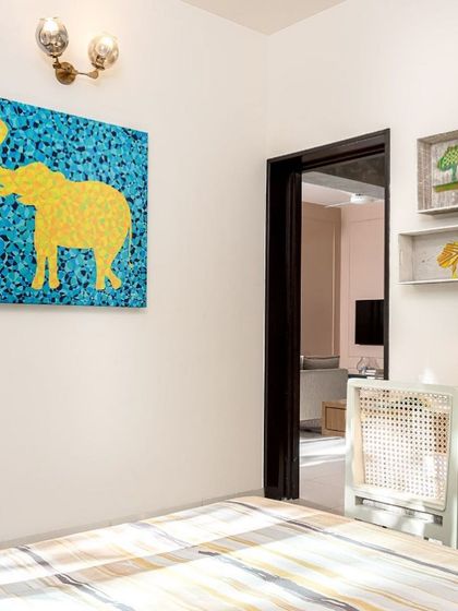 My paintings are stories told in color and form, blending modern aesthetics with traditional Indian roots. I often collaborate with interior designers to create the perfect accent piece that brings a room to life, with themes ranging from monochrome animal motifs to vibrant abstract geometrics.