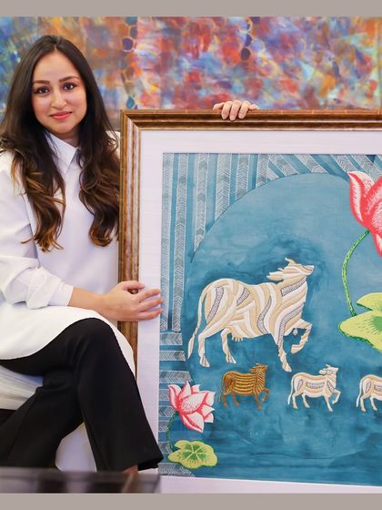 - Hand-embroidered tapestries: This is painting with thread—Zardozi, beadwork, and intricate embroidery. Each piece is unique and takes months, especially my animal-focused 'Protagonist Series' or the faith-inspired 'Heritage Collection'.