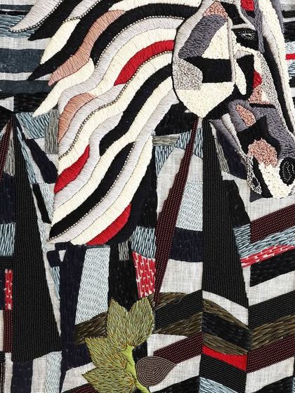 - Technique: Hybrid of acrylic painting and high-density hand embroidery.