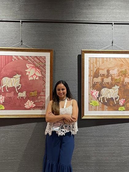 We started out in Delhi, but Bangalore’s got our vibe now. Still, Delhi calls us its ‘Daughter’ and that sticks. Art’s been our jam since 2005, not a sprint, just a steady walk. Family means everything—like our big canvas ‘Together’ for my 8 cousins, all raised like sisters. Sometimes, our art gets to do big stuff—paint for the UN, charity with FICCI FLO, or our wild upcycled mural at Delhi airport. That’s real joy.