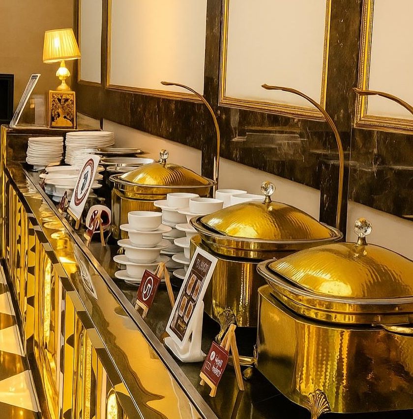 I believe food should be a feast for the eyes before it even reaches the plate. My setups feature elegant, royal-themed counters with premium chafing dishes and decor to make your wedding feel truly grand and sophisticated.