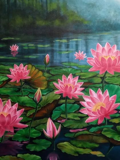 - Nature scenes - lotus ponds, forests, seascapes, all on canvas.