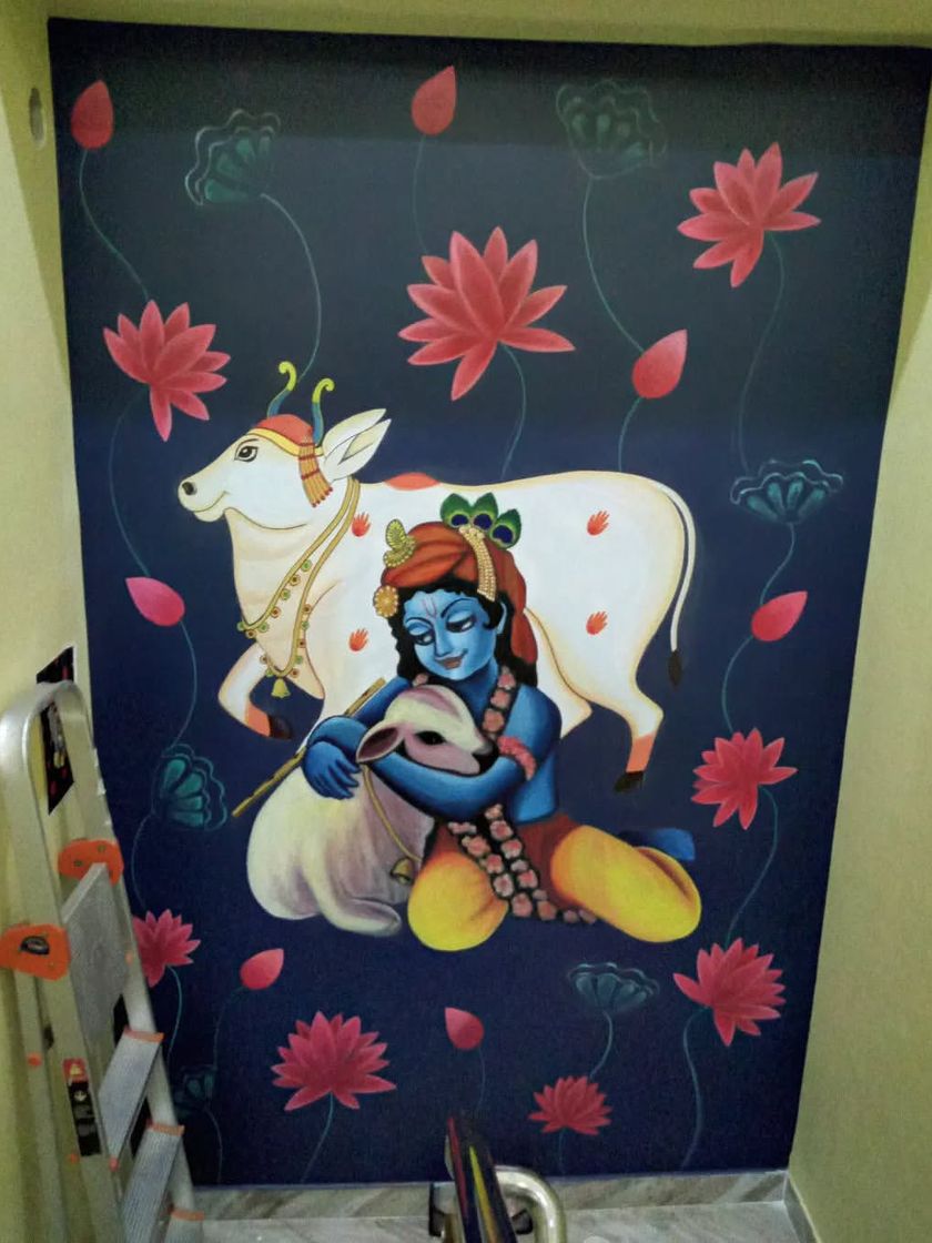 My work is deeply connected to my Indian roots and spirituality. I specialize in traditional art forms like Pichwai and Warli, creating sacred and heritage-inspired murals for temple rooms, staircases, and living spaces.
