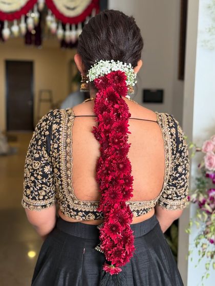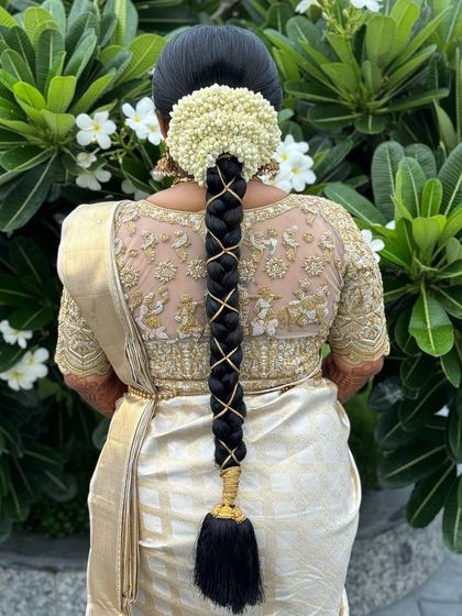 I do wedding and event makeup, hairstyling, and saree draping that lasts all day, fits your style, and works for any wedding event, including traditional South Indian ceremonies.