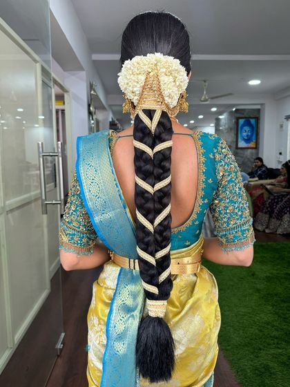 I specialize in traditional South Indian bridal hairstyling and saree draping, with over 14 years of experience. My expertise includes creating intricate bridal braids adorned with flowers and jewelry, along with elegant hairstyles like messy buns and updos for various ceremonies.