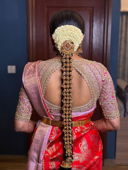 - Traditional: South Indian Jada installation, fixing of hair extensions, and secure placement of hair ornaments.