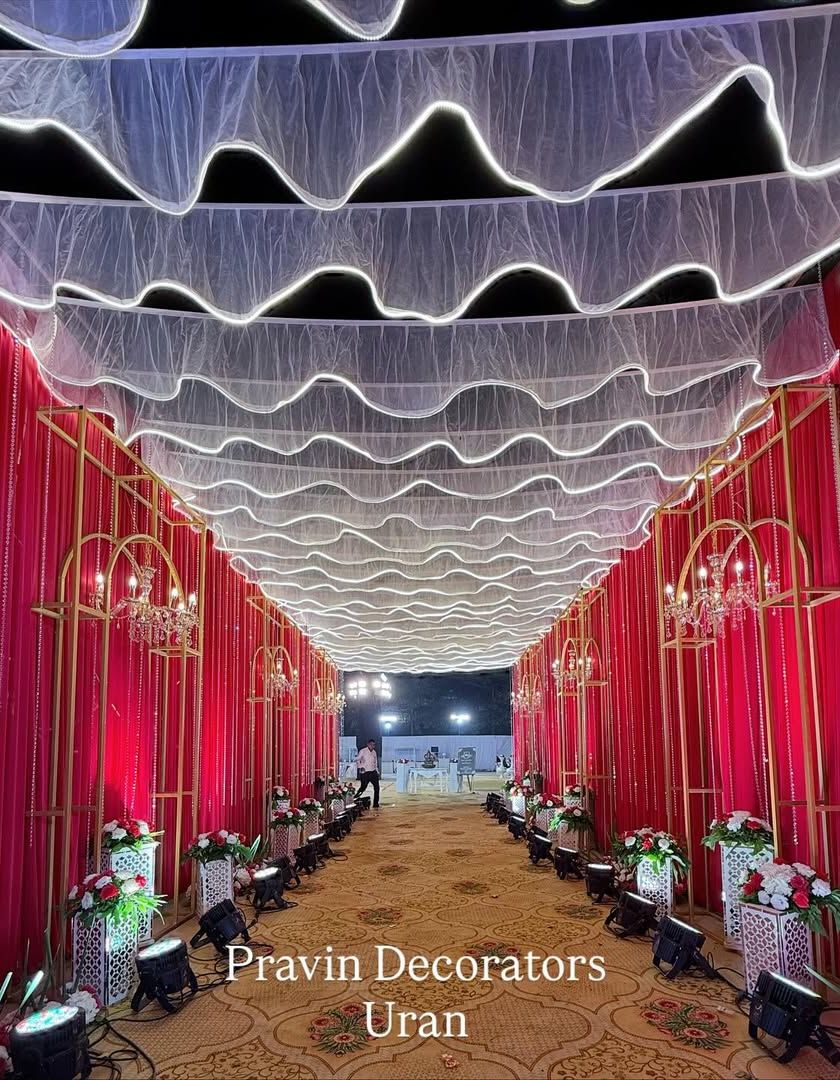 I believe the guest experience starts at the entrance. I design stunning walkways with elements like fabric draping, chandeliers, and floral arrangements, and use lighting to transform the entire venue atmosphere.