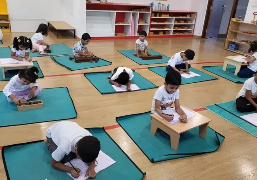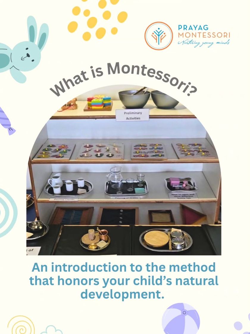 See what a typical day at Prayag looks like. In our calm, prepared environment, children are free to choose their work, engage in deep concentration, and learn through hands-on exploration with specially designed Montessori materials for sensory, math, and language development.