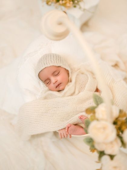 - Want classic, timeless photos? I do baby portrait sessions with soft wraps and safe newborn poses, focusing on your baby’s delicate features.