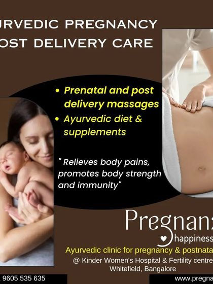 We offer ayurvedic prenatal care with massage, diet guidance, and physiotherapy, including home visits for pain relief, stress support, and better pregnancy comfort.