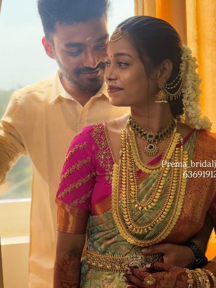 Hey, I’m Prema. Used to be just makeup, now it’s makeup and jewellery – all under one roof. Saw brides stressing over buying expensive sets for just one day, so I thought, why not rent out gorgeous pieces instead? That’s how Prema Bridal Jewellery started in Bangalore. I love seeing my clients glow, whether it’s through a flawless look or the perfect necklace. I’m all about making you feel special, without breaking the bank.