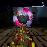 We transform terraces, gardens, and other outdoor spaces into enchanting party settings. Our services include cabana-style frames with fairy lights, rustic low-seating arrangements, and weather-resistant balloon and floral decorations for an open-air event.
