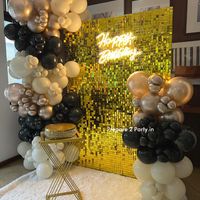 Make a statement with our shimmering sequin walls, available in gold, silver, and other colors. Paired with a custom neon sign and balloon arrangements, these backdrops are perfect for creating a high-energy, glamorous photo zone for any party.