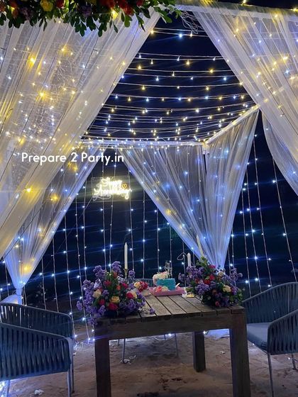 We come to you, set everything up and clear out after. Have done setups in homes, terraces, hotels, gardens, and poolside spots. Mostly work in Bangalore and Hyderabad but also travel to Mumbai, Kolkata, Delhi, and Gurgaon if needed.
