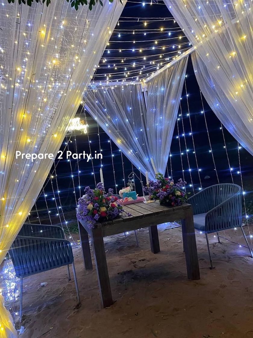 We create private, cozy dining experiences for couples, perfect for date nights, birthdays, or anniversaries. Our services include setting up cabanas and teepees in various styles, from classic romantic themes with fairy lights to bohemian setups with pampas grass and low seating. These can be installed on terraces, in gardens, or even on a balcony.