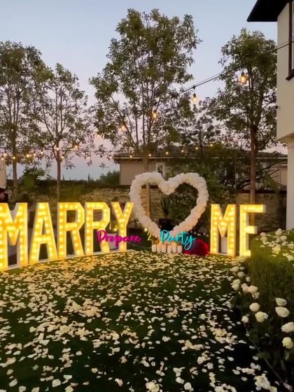 We design and execute large scale, impactful proposal decorations that create a definitive "wow" factor. These setups often include statement pieces like large marquee letters, custom neon signs, floral arches, and dramatic lighting, perfect for capturing the moment on camera. We can arrange these grand proposals in gardens, on rooftops, or inside your home.