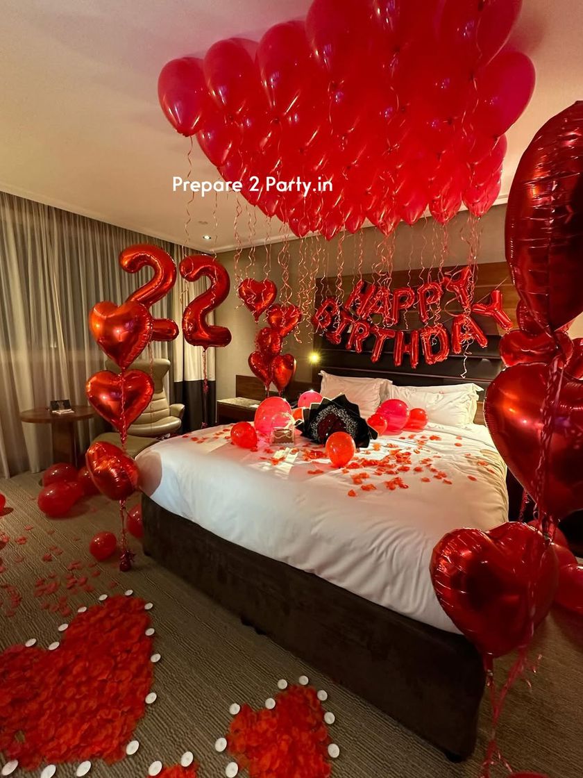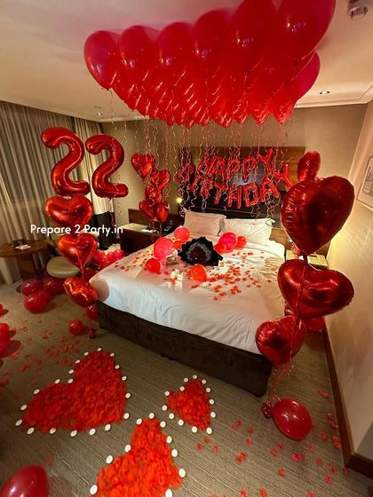 We specialize in turning any room, whether at home or in a hotel, into a romantic haven for your partner. Our services range from classic anniversary decorations with rose petals and balloons to traditional floral 'Suhgaat Raat' setups for wedding nights. We handle the complete transformation to create a memorable surprise.