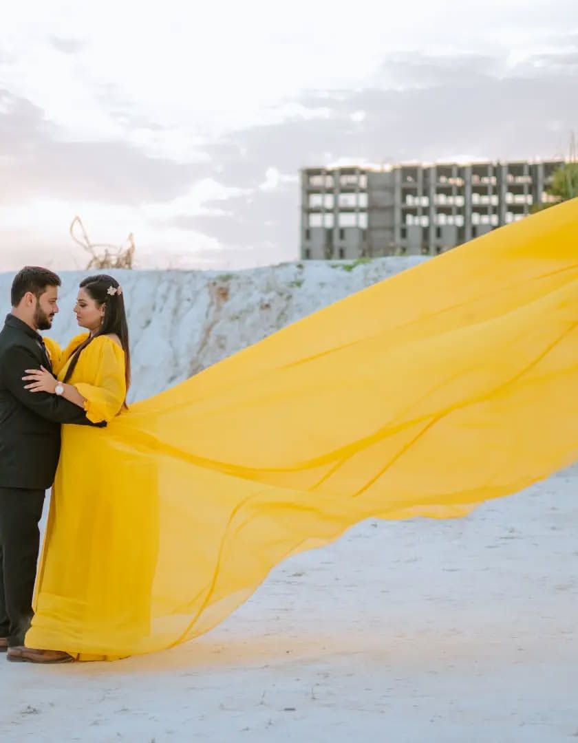 For couples who want something truly different, I offer shoots at surreal locations like the turquoise waters of Kishangarh or in fantasy-like sets. This is where we create magic with flowing gowns, dramatic poses, and epic drone shots, resulting in photos and videos that look like they are straight out of a movie.
