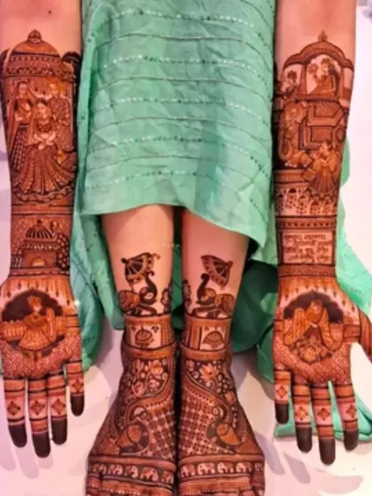 I specialize in turning your personal story into mehandi art. Whether it's a portrait of you and your partner, a depiction of your varmala or sindoor ceremony, or even your wedding hashtag, I can draw it with precision.