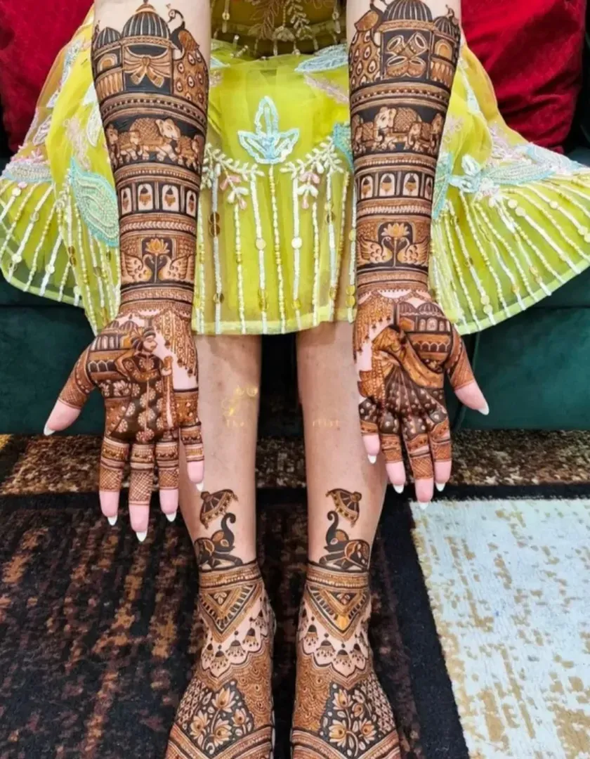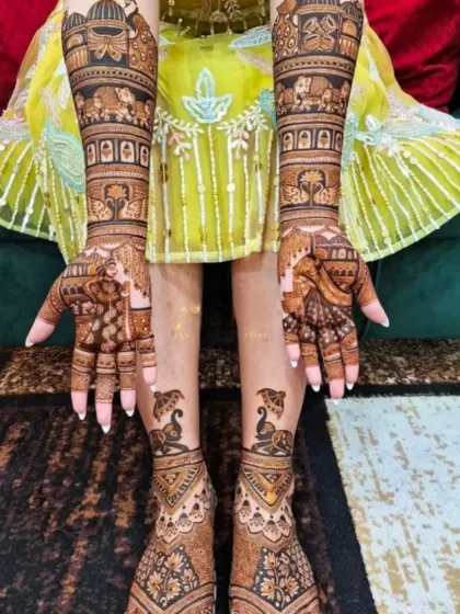 For the bride who wants the full experience, I offer complete packages that cover hands, arms, feet, and legs. I ensure the designs are coordinated to create a stunning, cohesive look from head to toe.