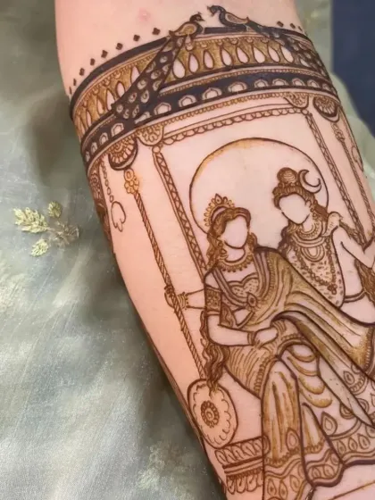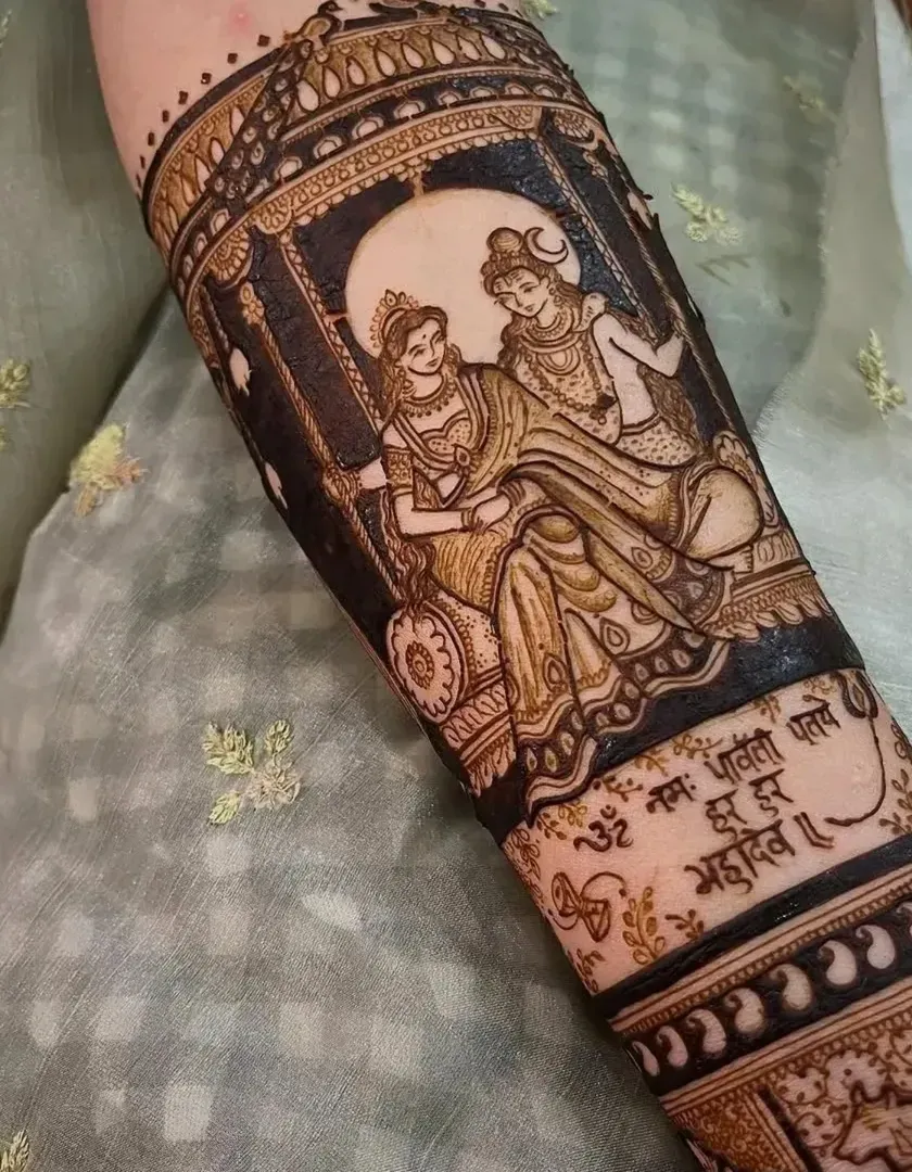 Bring blessings to your new journey with mehandi designs inspired by divine figures. I create detailed portraits of deities like Radha-Krishna and Ganesha, along with other auspicious symbols for good fortune.
