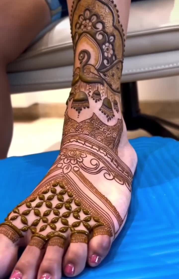 Complete your bridal look with beautiful mehandi for your feet and legs. I create everything from simple, elegant patterns to full-coverage designs that match your hand mehandi.