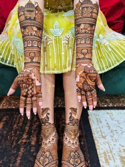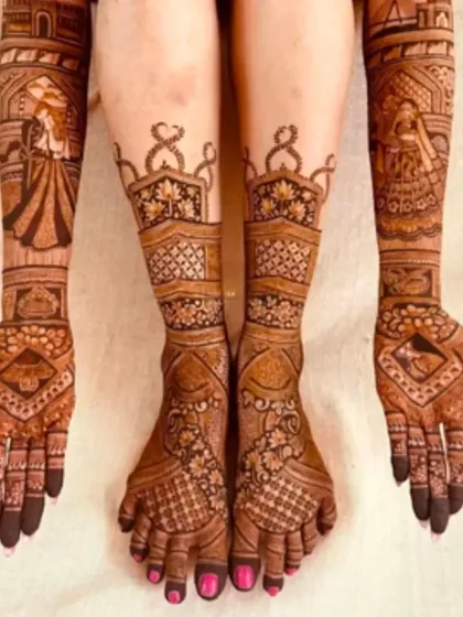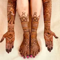 This is a showcase of my best work, giving you a glimpse into the detailed, story-driven mehandi I create for my brides. Each design is a unique piece of art, made with 100% natural henna for a beautiful, dark stain.