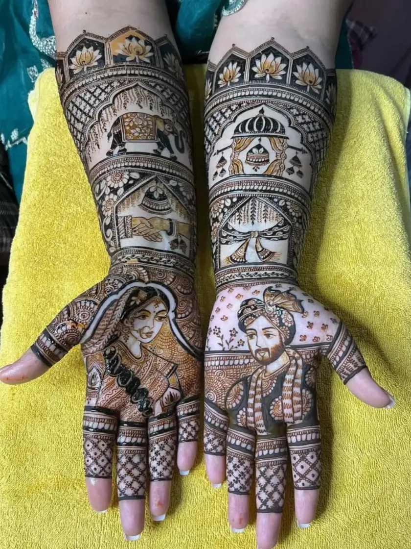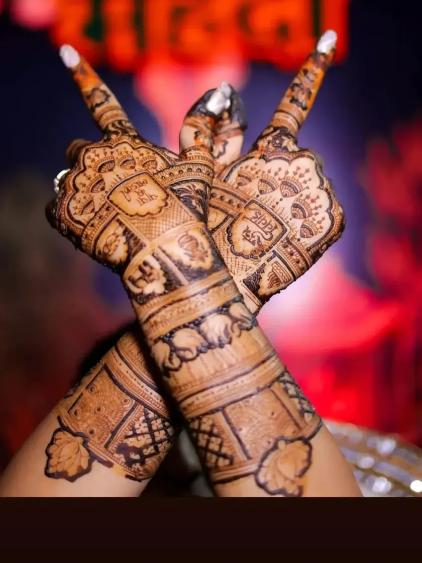 It's the small things that make your mehandi truly yours. I incorporate names, initials, wedding dates, hashtags, and symbolic motifs like elephants and peacocks with fine-line detail.