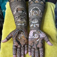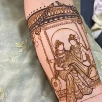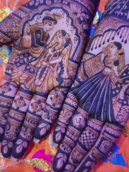 Add a divine blessing to your bridal look. I specialize in drawing spiritual figures like Radha-Krishna and Shiva-Parvati, or any deity you feel connected to.