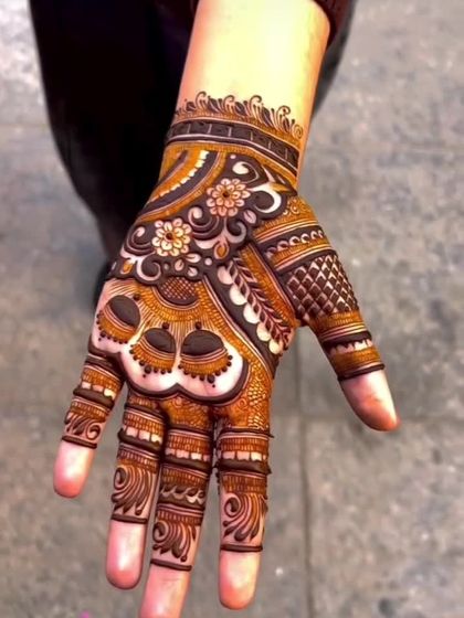 This is where I showcase my most detailed and elaborate work. These designs are perfect for brides or anyone wanting full-coverage mehandi, featuring complex patterns, fine lines, and traditional motifs that cover the hands and arms.